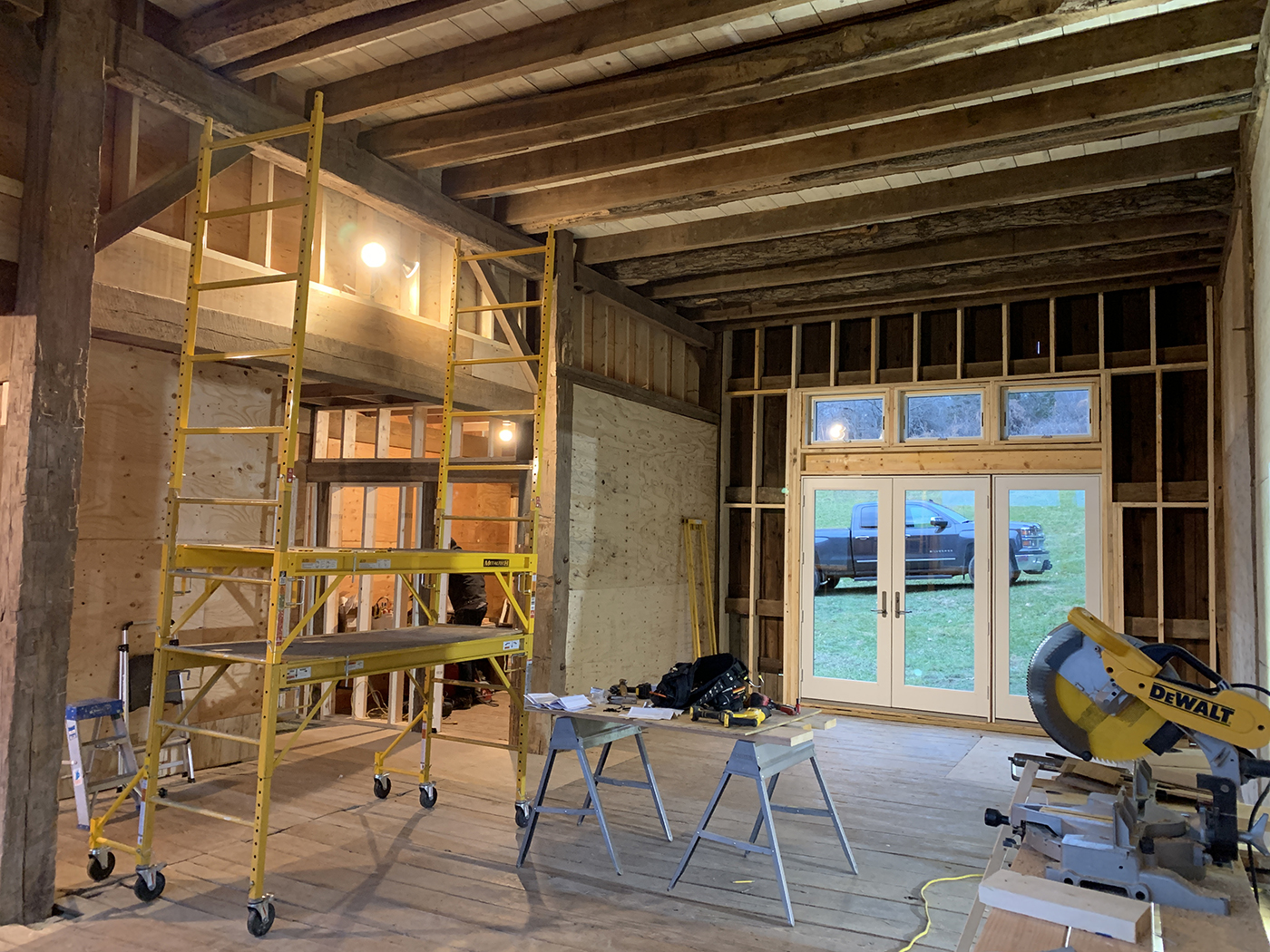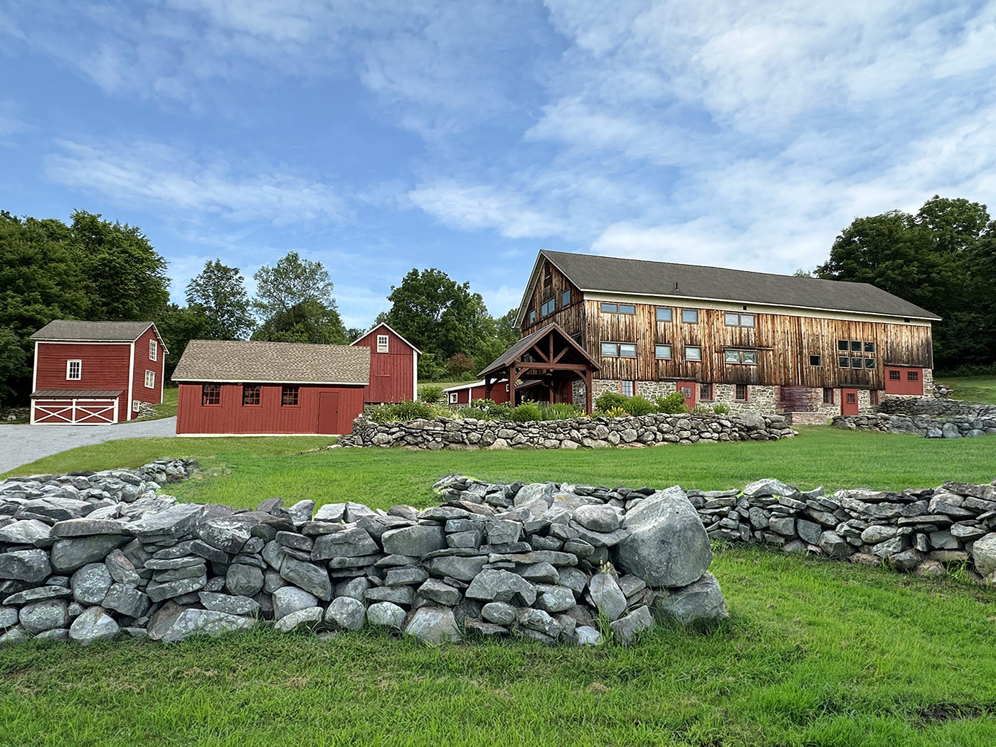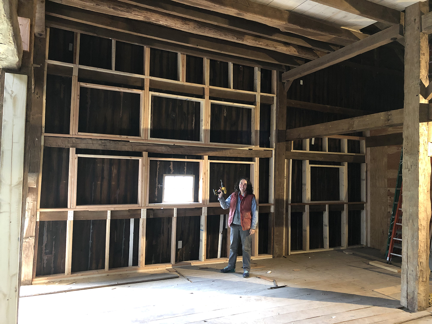 In 2015, about one third of the barn was still unfinished, allowing us (with the help of Brian's son, Tyler) to rebuild the space into a sculpture studio for Brian. A welding shed and garage would follow as well as updates to existing buildings for additional storage. We did extensive excavation and added new retaining walls to accomodate the new structures. The property is now filled with Brian's sculptures.